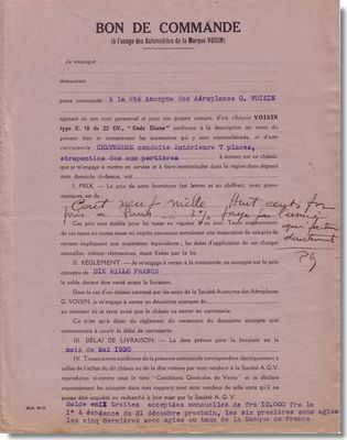 Un bon de commande de 1930.