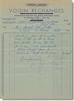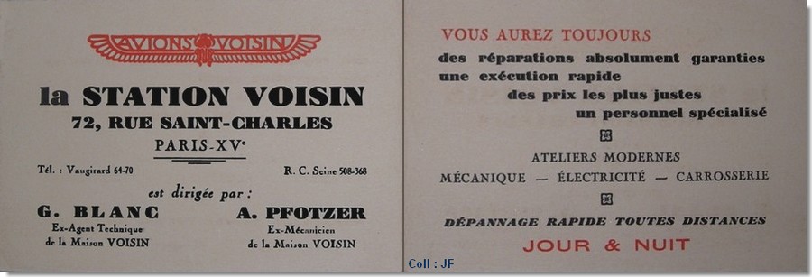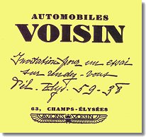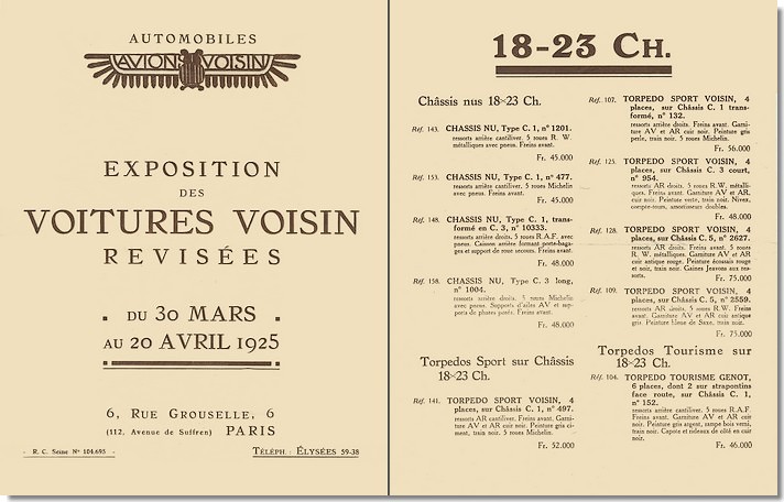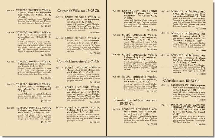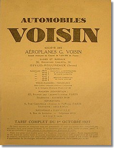 ![]() Tarifs Voisin de 1927 (Coll. PMA) |